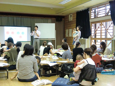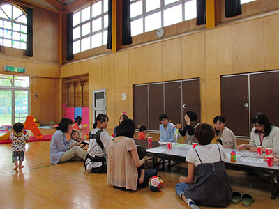 「にこにこ広場」(月1~2回・定例)は0歳親子の会、1歳親子の会もあり、同じ年頃のお子さんをもつ地域のお母さん達の憩いの場ともなっています。