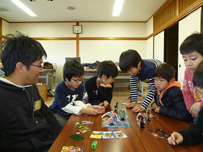 日本・ドイツ・フランスなどの珍しいボードゲーム・テーブルゲームをたくさん用意して、交遊会さんの皆さんが来てくださいました。今年度4回目のテーブル・ゲーム・カフェ。参加する小学生もだいぶ慣れ、ちょっと難しいゲームにも挑戦。教えてくれる交遊会の皆さんが、子どもたちの成長した姿に感心していました。お父さんやお母さん・おじいちゃん・おばあちゃんも参加。気が付くと夢中になっていたようです。普段、元気いっぱいに体を動かす小学生たちが、テーブルから離れないで夢中になっていたり、低学年の子に優しく教えていたり、お父さんに得意げに教えていたりなど、いつもとはちょっと違う姿が見られる行事でもありました。