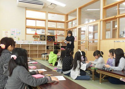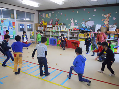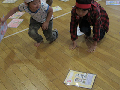 この日、幼児クラブ15名、お母さん12名の参加による『お正月あそび』の会を開きました。