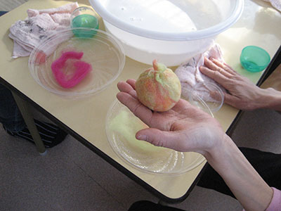 0歳児さんのひよこタイムではママたちが、乳幼児親子自由参加のなかよしタイムではママに手伝ってもらって、お友達が一生懸命つくりました。