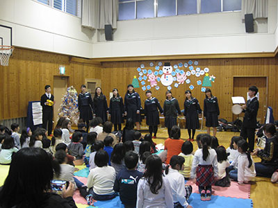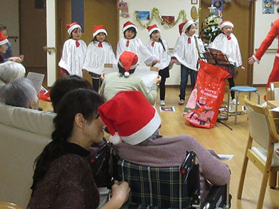 2016/12/20児童館の近所にあるグループホーム「あったかいご」さんのクリスマス会に、児童クラブの6名が合唱隊として出演してきました。