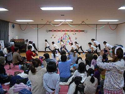 メンバーは、この日に向けてクリスマスソングを中心に歌・演奏・ダンスを練習。初めは少し緊張しましたが、ホームの方たちの嬉しそうな様子に後押しされ、元気に披露することができました。お年寄りの皆さんも一緒に歌ったり手足を動かしたり、部屋中笑顔いっぱいの楽しいひと時を過ごしました。