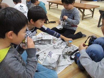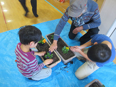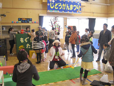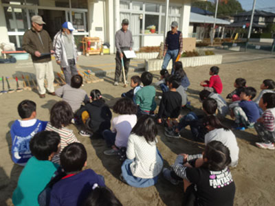 2016/11/22虹の丘小学校30周年行事の振替休日は、さわやかな秋晴れでした。シニアクラブのみなさんにご指導いただきながら、小学生がグラウンドゴルフに挑戦しました。6人ずつのチームに分かれ、ホールに向かってボールを打ちました。力の加減が難しく、ホールに入るまでに何打も打つ場面もありましたが、シニアクラブのみなさんは、優しく打ち方のアドバイスをしてくださり、5コースを回る頃には、クラブを振る姿も板に付いてきました。閉会では、ホールインワンを取った子どもが紹介され、拍手に包まれました。グラウンドゴルフは、地域の大人と子どもたちがふれあえる行事として毎年開催しています。
