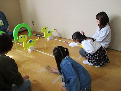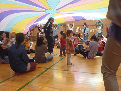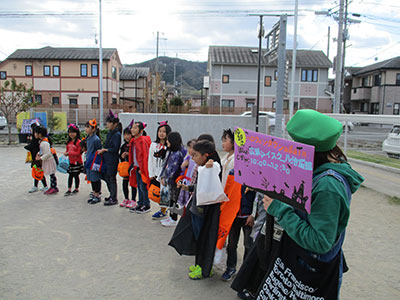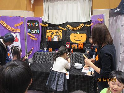 2016/10/29気持ちよく晴れた10月最後の土曜日、待ちに待ったおまつりの日。受付の民生委員さん、クイズコーナーの豊栄会の方々、児童クラブの保護者など、地域のみなさまの協力をいただき、準備万端。10時、コーナー遊び、スタートです。ハロウィンにちなんだ宝さがしやボール投げ、シール作りなど、日常の遊びにおまつりというスパイスがくわわって楽しさ倍増、どのコーナーも押すな押すなの大盛り上がり。この日のために、小学生、中学生、専門学校生のスタッフと準備や打ち合わせを重ねてきた結果がたくさんの笑顔につながりました。70人近いスタッフと約300人の来場者と12時にフィナーレを迎えました。