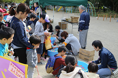 2016/10/2210月22日(土)将監西コミュニティセンターと共催の「将監西コミュニティまつり(将監西児童館まつり)」を開催しました。今年度の児童館まつりのタイトルは、「ニッシーカーニバル」。昨年できあがった児童館のマスコットキャラクター『ニッシー』をメインとした遊びのコーナー(ニッシーサンバ、ニッシーペインティング、ニッシー合わせなど)を7つ用意して、子どもたちに楽しく遊んでもらいました。当日は、おまつりにふさわしい好天に恵まれ、各コーナーたくさんの参加者で賑わいました。また、ステージ発表では、コミュニティセンターの利用団体のコーラスや踊りなどが披露されました。児童館からは、オープニングに将監西児童館コーラス隊による「児童館のうた『光の中に』、『歌えバンバン』」のうたではじまり、ちびっこダンサー・ママーズ(幼児親子)による体操(『リンリンGO!!』、『ミッキーマウスマーチ』)、そして最後にチア隊によるチアダンス(『Anniversary!!』、『友よ』)を発表し、まつりに花を添えました。また、参加者にニッシーの缶バッジが配られたり、ニッシーパンが販売されたりと、ニッシー一色のおまつりとなりました。ボランティアとしてお手伝いいただいた将監西小学校子どもかい育成会、児童クラブ保護者、東北生活文化大学高等学校、将監中学校、将監クレヨン(ジュニアリーダー)、将監西児童館子育てクラブの皆様に心から感謝いたします。