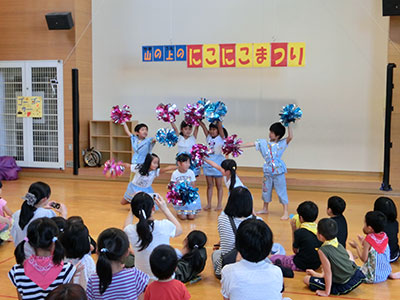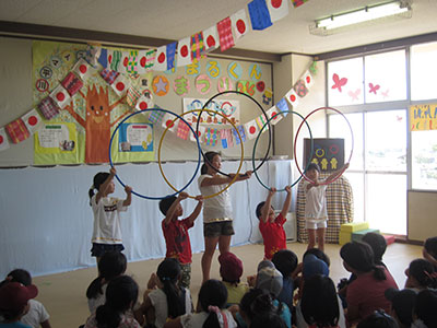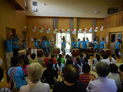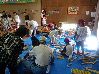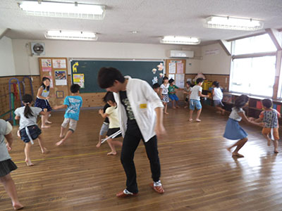 2016/09/10普段折立児童館で遊んでいる小学生が、この日、歩いて落合児童館に遊びに来てくれました。新たな出会いに、初めは緊張している様子の子ども達。始めに、各自用意した名刺を交換して、自己紹介を行いました。次に、東北福祉大学の学生サークル「ふたばクルーズ」のお兄さん達が用意してきてくれたレクリエーションで、みんな一緒に遊びました。追いかけっこをしたり、チームに分かれて競争をしたりしていくうちに、段々と緊張が解かれ、笑顔で遊ぶ姿が見られました。普段はなかなか接点のない世代の大学生と、一緒に遊べられたことも、子ども達は嬉しかった様です。行事終了後には、子ども達同士で好きなキャラクターについて話をしたり、落合児童館の遊具を案内して一緒に遊んだりと、新しくできた友だちと楽しく過ごしていました。