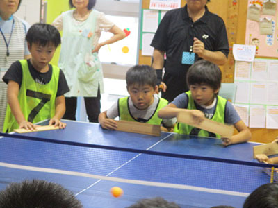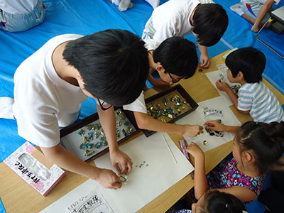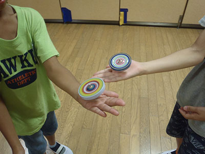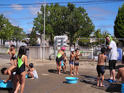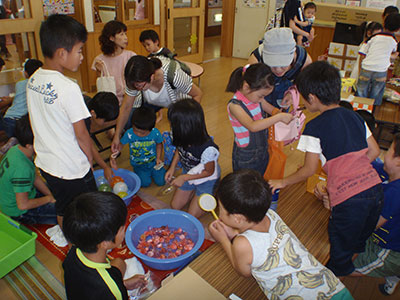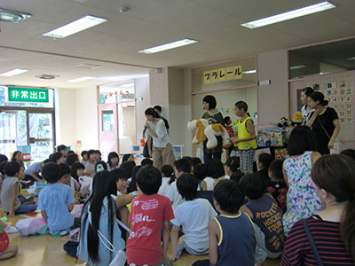 2016/08/19子ども達が楽しみにしていた夏休み後半の大行事“とり+かえっこ”が行われ、90名以上の子ども達が参加してくれました。ジュニアやチャイルドボランティアそして小学生の実行委員が相談を重ね、今年も活気ある“こどものまち”が展開されました。「レジ係」や「問屋さん」「銀行」「新聞記者」などのお仕事をしたり、「ゲームコーナー」で遊んだりして「かえるポイント」をため、持ち寄ったおもちゃを“とりかえっこ”するこの行事は大人気。ジュニアボランティアのお姉さん達のリードで、後半のオークションも大いに盛り上がりました。大きな紙袋を抱えて満足気な子ども達の笑顔が眩しい、夏休みの1日でした。