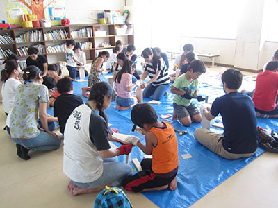 夏休み中に、小学生親子対象行事「親子木工教室」を行いました。講師に竹内良介さんをお招きし、文庫本サイズの本立て作りを指導していただきました。