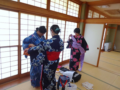 仙台七夕前夜祭の日。中高生を対象に『浴衣の着付け』講座を行いました。講師は、地域の方でもある庄司先生にお願いして、浴衣のことについて、教えていただきました▼今回は、ひとりで着付けられることが目標!浴衣を着ることも、帯に裏表があることも初めて知る子どもたちでした。手とり足とり丁寧に教えていただき、いよいよ、自分で浴衣を着付けていきます▼教えられたことをゆっくりと思い出しながら行う姿は、真剣そのもの!また、ひとつ成長した子どもたちでした。