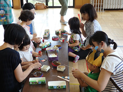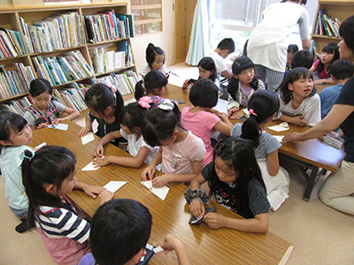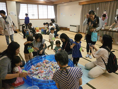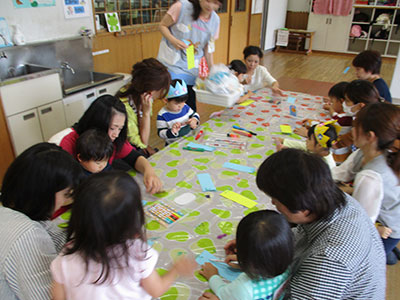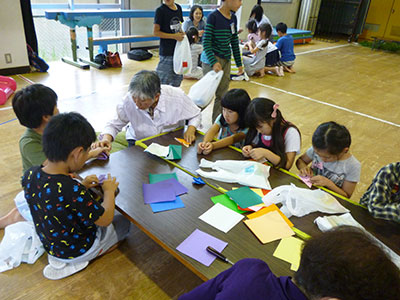 2016/07/06毎年恒例の小学生対象、七夕飾り作りを行いました。笹竹は地域の方からいただき、各自持ち帰れるように準備し、折り紙ボランティアの方たちとは事前に打ち合わせ、準備をし当日を迎えました。子どもたちはコーナーを回って風船の吹き流しや投網など五つの飾り作りにチャレンジ。折り紙を折ったり切ったりするのに苦戦する子もいましたが、ボランティアの作った折り鶴をいただき、短冊に願い事を書いて完成。あいにくの天気で笹竹には飾らず、飾りと竹を各自持ち帰りました。今回は折り紙ボランティアの助っ人として地区社協の方にもご協力をいただき、地域との交流を図りながら季節の行事を楽しむよい機会となりました。