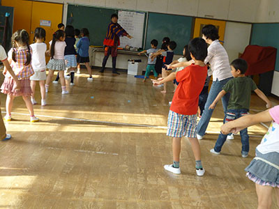この日、高森東児童センターにもコマ侍(蓬田拓先生)がやってきました。高森東小学校が振替休日だったので、たくさんの子ども達が集まってくれました。