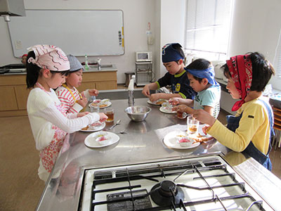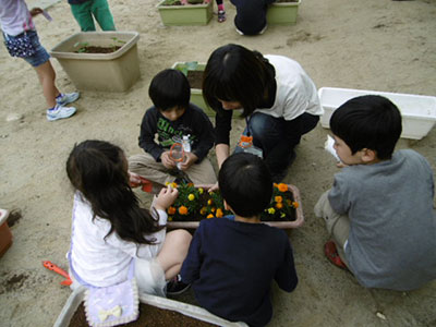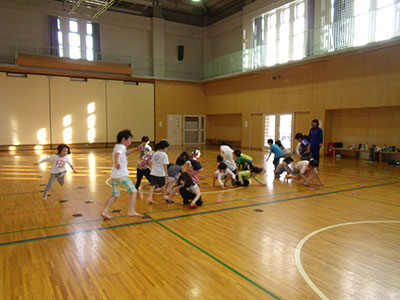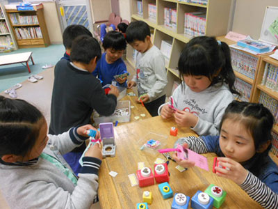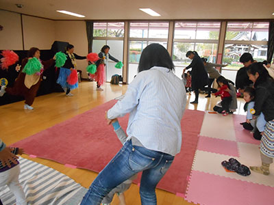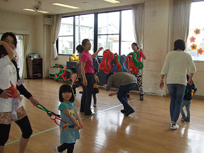 2016/05/11 幼児クラブ初めての「お外あそび」。双眼鏡を親子で作って、園庭の植木やお花の観察、遊具やお砂場でたくさん遊ぼうと計画していましたが、雨のため館内で行うことになりました。