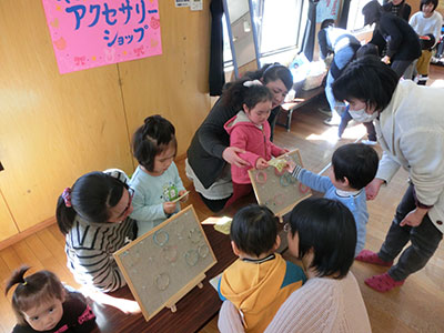 暖かな春の日ざしが差しこむ集会室に、「ぱんだ商店街」がオープンしました。