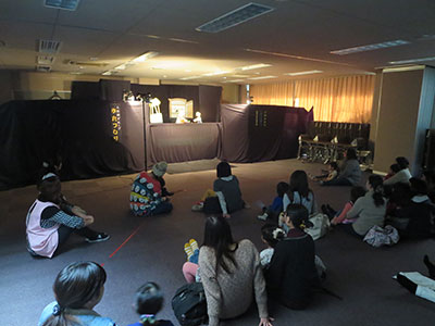 参加した48名の幼児さん親子は、人形の動きに合わせて一緒に体を動かしたり、見とれて思わずニコニコほほ笑んだりしながら、楽しい時間を過ごしました。