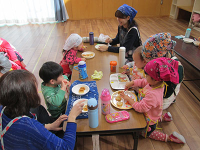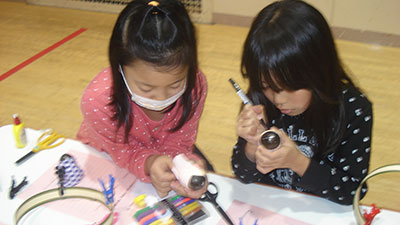 1年~4年生まで16名の子どもたちが参加しました。作り方を熱心にきいた後、周りの子どもたちと談笑しながら、自分の思い思いの作品を作っていました。