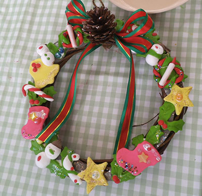 世界に一つだけ♡樹脂粘土でオリジナルリースを作りました。パンの花の佐藤先生をお招きして、樹脂粘土に初めて挑戦!ちょっとだけ子どもと離れてママだけの時間を満喫した方も、お子さんと一緒に楽しんだ方も、クリスマスを華やかに彩るすてきなリースができあがりました。この樹脂粘土作品は、10年以上も保存できるそうです。お子さんが大きくなっても、一緒に作った思い出の作品として毎年クリスマスに飾ってもらえたら嬉しいなぁと思います。