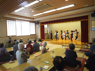 小学生8名が、地域の高齢者の方が集まる「憩いの家」を訪問してきました。2ヶ月ほど練習した雀踊りを発表すると、アンコールが出るくらいとても喜んでいただきました。おじいちゃん、おばあちゃんと一緒に折り紙を折ったり、お話をしたりと、あっという間の1時間を楽しんできました。子どもたちの頼もしい表情に成長を感じる訪問となりました。