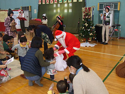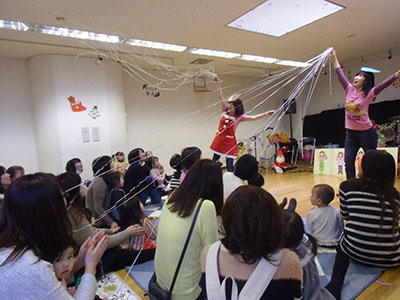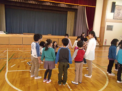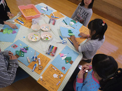 2015/12/09桂小学校授業参観後の懇談会の間、桂小学校体育館において「移動児童センター」を開催しました。対象は1~3年生の子ども達。当日の参加人数は39名とたくさん参加してくれました。普段あまり児童センターに遊びに来ることがない子ども達も参加し、わらべうたあそびや集団ゲーム、工作などを体験して楽しみました。当日は4~6年生の子ども達を対象としたボランティア「Gooクラブ」がお手伝いしてくれ、ゲームの進行や工作の補助などで大活躍!普段なかなか関わることが少ない異学年同士の交流も図れました。懇談会が終了する迄の1時間半、子ども達は大きな声で笑い合い、どの子もいきいきとした表情で楽しんでいました。終了後、子ども達からは「楽しかった~」などの感想があがり、大満足のひとときになったようです。