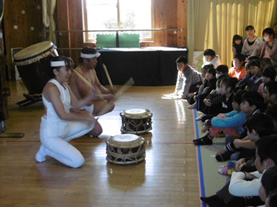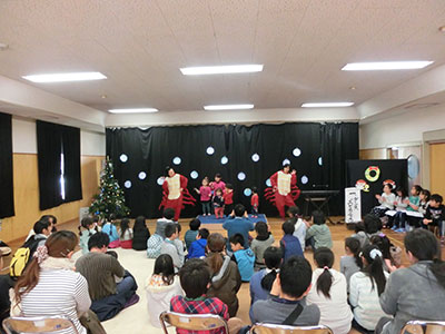 八木山児童館のクリスマス恒例企画「冬のおくりもの」が、12月上旬に盛大に行われました!今年の「冬おく」は音楽がいっぱい♪児童クラブの子ども達によるハンドベル隊は可愛らしい演奏を、八木山小「夢色音楽隊」は素敵なジャズ演奏を聴かせてくれました。そして今年のスペシャル企画は、男女ユニット「伊達幻創」による和太鼓演奏!!熱くパワフルな迫力ある演奏は、全ての観客を魅了するものでした!また参加した子ども達も実際に和太鼓を演奏し、貴重な体験をしました。