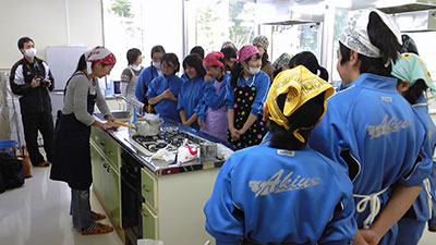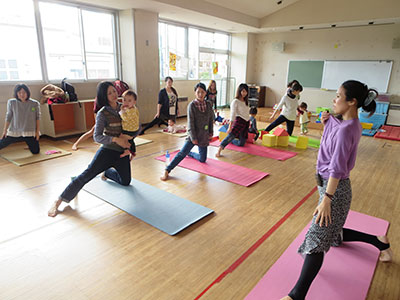 フットサルは室内で行う5人制のサッカーです。コートの広さは11人制の約1/3となっています。普段の上靴だとちょっと滑ってしまうようですが、参加者は選手の指導を受けながら楽しそうにボールを追っていました。ボールをる蹴るだけではなく、体いっぱいを使った動きなどを教えていただき、子どもたちは4回の休憩タイムも忘れて夢中になっていました。