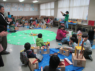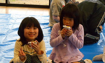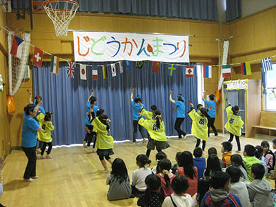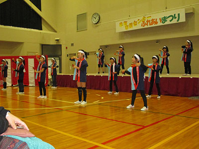大きなステージに、たくさんの来客の前で堂々と見事な踊りを満面の笑顔で披露しました。拍手喝采を受け退場し、子ども達は『楽しかった!』『来年も踊りたい!』と大満足。
