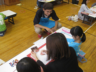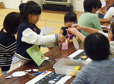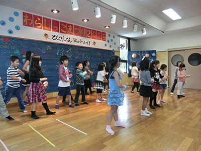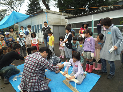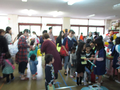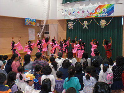 2015/09/26毎年恒例の「人来田まつり」(共催マイスクール人来田)に250人もの地域の幅広い年代の方にご参加頂き、盛り上がりました。「マイスクール 大正琴サークル」の皆さんによる演奏でスタートし、次に「児童館 幼児クラブ」のダンスの発表がありました。自分で作ったネコの衣装を着て可愛らしく踊る姿に大きな拍手を頂きました。続く小学生有志「人形劇やってみたい」による人形劇「大きなかぶ」が大成功で、来賓の校長先生からもお褒めの言葉を頂きました。ステージ発表終了後は遊びのコーナーが始まり、バルーン、ストラックアウト、こけしのしおり作りなど色々なコーナーを楽しみました。子どもスタッフたちによる「しゃてき」「つり」コーナーも好評でした。