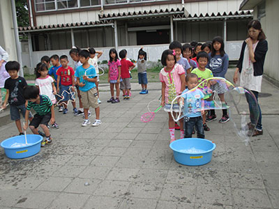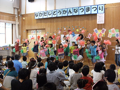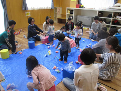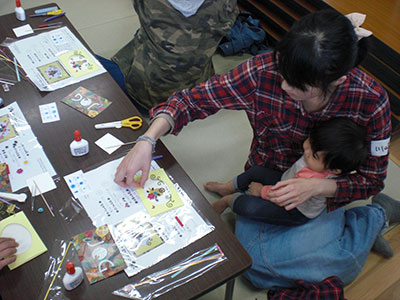 2015/08/29今年も乳幼児親子対象の児童館まつりを行いました。当日は雨で肌寒い天候でしたが、多くの方が来てくれました。小学生によるダンス「おっす!イスのおうえんだん」のオープニングから始まり、迷路、釣り堀、パクパク工作、ブレスレット工作、おみくじ、輪投げのコーナーを楽しみ、くじ引き抽選会で終えました。各コーナーとも盛況で親子で楽しんでいました。また、まつりのスタッフは、地域の方々(子育て支援クラブ・民生委員児童委員)、大学生(3大学)、小学生(1~5年生)の協力をいただきました。まつり後のアンケートでは、みんな楽しかった、来年も参加したい、大人も楽しめるコーナーがよかった等の意見がありました。
