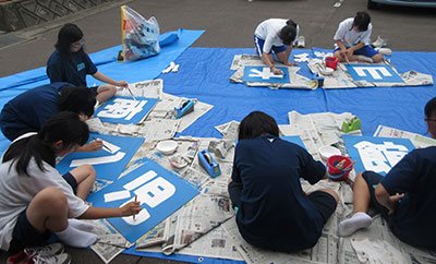 「古くなった児童館の看板をリニューアルします。お手伝いを募集します!」の呼びかけに、近隣の2つの中学校から9名の中学生が手を挙げてくれました。30度近い暑さの中、板のやすりがけから文字の切り出し、ペンキ塗りまで、2時間の作業を一生懸命丁寧に取り組んでくれました。おかげで、とっても素敵な看板が完成しましたよ!「難しいところもあり大変だったけれど、楽しかった。」と感想を伝えてくれた中学生たちも満足気な表情。新しい看板は夏休みのうちに設置したいと思いますので、楽しみにしていてくださいね。中学生の皆さん、お手伝いありがとうございました!!
