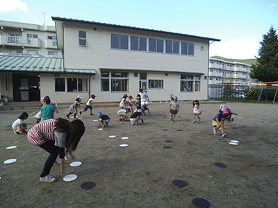 2015/06/29学年も男女も関係ない!1~5年生まで40人以上が集まり、館庭で思いっきり遊びました。今回のテーマは集団遊び。じゃんけんゲーム、コツを掴むと早かったチーム対抗フラフープくぐしやオセロのように大きな駒をひっくり返すゲームのリバーシで遊びました。ゲームが進むにつれて、子ども同士で応援し合う声がどんどん大きくなったり、合間をぬってチームごとに作戦を立てたりと、ゲームに夢中になっていく姿が印象的でした。終わったときのやり切った表情がキラキラしていた子どもたちです。