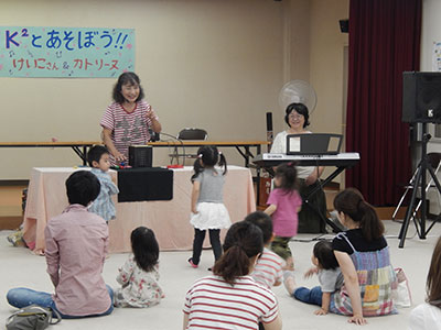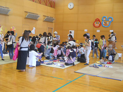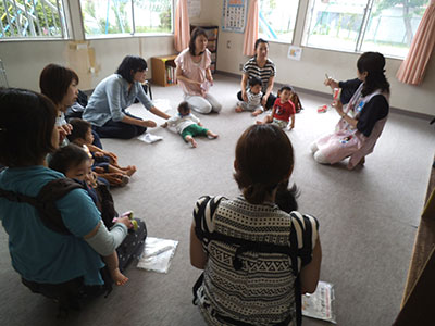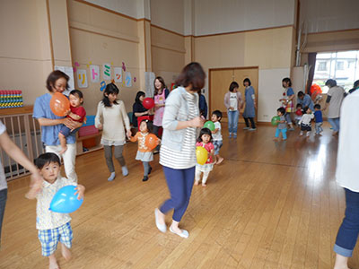 2015/06/19リトミックは毎年アンケートでも要望の多い行事で、今年に入ってからもお母さん方の期待が高まっていました。当日は19組の親子が一堂に会し、音楽に合わせて笑顔いっぱい、体を動かしていました。今回は先生も趣向を凝らしてくださり風船を使ったリズム遊びを取り入れてくださいました。ふわふわ飛んでいく風船を追いかけたり、リズムに合わせて風船を飛ばしたり子どもたちの好奇心や興味を引き出しながら楽しい時間があっという間に過ぎていきました。お母さん方も風船を使ったリトミックは初めての体験だったらしくとても感激していました。そして何より、親子が一緒に音楽・リズムに触れ合える良い機会だったことに喜びを感じているようでした