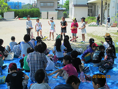 ブルーシートの上でみんなで空を見て寝そべったり、静かに目をつむって鳥の声を聞いたり・・。いつもの児童センターで、いつもと違う自然を感じたり、お友だちの発表を応援したりして、みんなで楽しい春の宴のようなひと時を過ごしました。