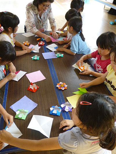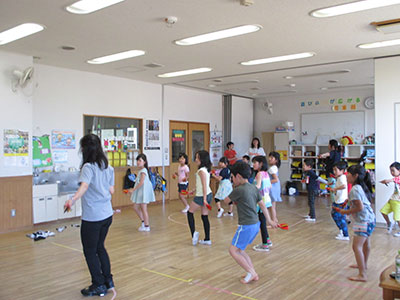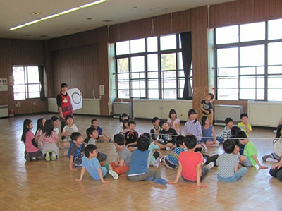 2015/05/25今年度1回目のみんなであそぼうは○×クイズ大会を実施しました。まずはグループ作り。いろいろなスポーツの選手の人数でグループを作ります。野球、ラグビー、バレーボール・・・。最終的にサッカーの11人でグループになりました。そして、お待ちかねのクイズ大会。「東京ディズニーランドは東京都にある。○か×か?」「(むすび丸のイラストを見せて)これはおむすびマンである。○か×か?」など、楽しい問題がいっぱいでした。チームで何点取ったかで順位を決めました。優勝チームは賞状をもらい大喜び。にぎやかでとても楽しいクイズ大会になりました。