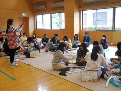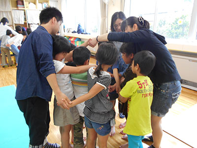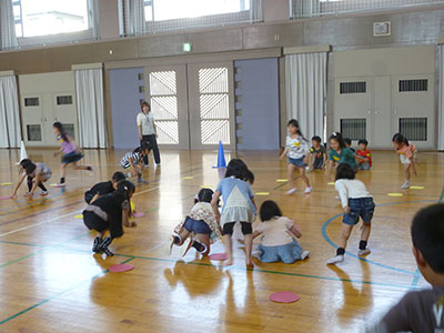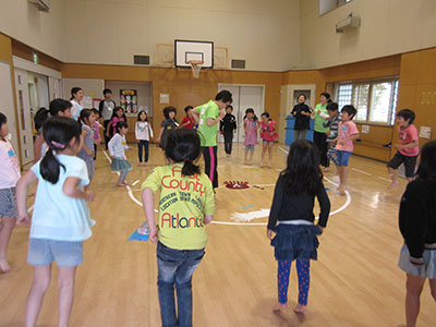 2015/05/11仙台ひと・まち交流財団の児童厚生員によるグループ「きんにく~ず」に運動遊びを教えてもらいました。今回は3種目。「王様陣取り」はじゃんけんで王様を倒す、「しまおに」はチーム内で1人でもゴールすれば勝ちの【チーム対抗戦】。「ダンス」は音楽にあわせた準備運動…のはずが気づけば3年男子もノリノリで踊っていました。時「間」、空「間」、仲「間」のさん「ま」が欠けがちといわれる現在の小学生の放課後。たくさんの子どもが利用する児童館で、これからも集団遊びを通して、心と体の成長を支援していきたいと考えています。