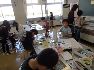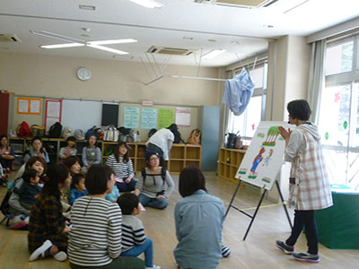 2015/04/25中野児童館では毎月、中野小学校へ移動して、工作や遊びの行事を開催しています。