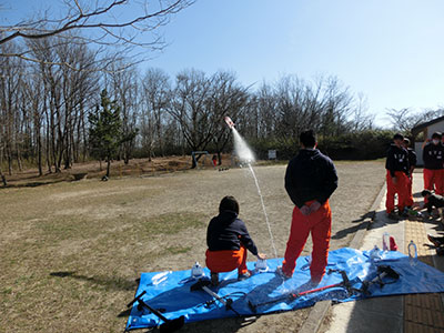 東北大学ロケット製作打上げサークル「From the Earth」のみなさんと、宮城学生ボランティアサークル「@plus」の皆さんと一緒にペットボトルロケットを作って飛ばしました。グループに分かれてロケットを作る時の表情は真剣そのもの!難しい作業は大学生が優しく教えてくれました。完成したロケットの中に水と空気を入れて館庭で飛ばし、目標の位置までいかに近づけられるかを競います。ビューンと飛んだロケットは青い空を横切って、なんと30メートル以上も飛びました。優勝したチームも、惜しかったチームも、みんな大満足。優しい大学生とも交流でき、春休みの楽しい思い出ができました。
