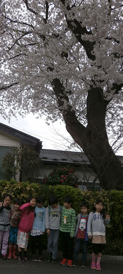 降水確率70%の中、児童館隣のパンダ公園に出発!「ここで雨が降るまで遊ぶか」「それとも早足でお散歩を続行するか」。多数決の結果、お散歩続行に決定!雲行きを気にしながら六郷堀を渡り、JRアパートを突っ切って、二号公園に到着!遊んでいきたいけど、黒雲が迫っているぞ。公園を横目で見ながら帰路を急ぎます。散歩中の犬に手を振ったり、工事のおじさんに挨拶したりと、慌ただしい中でも館外活動を満喫する子どもたち。貨物の高架下で大きな桜の木を見つけ「はい、ポ-ズ!」。後は児童館目指してまっしぐら~。「ただいま!」の声と共に、空からぽつりと雨、雷がゴロゴロゴロ~。ぎりぎりセーフで間に合ったね。あ~よかった。^_^