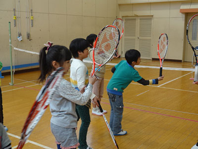 ラケットを持つのは初めて!か、前回も合わせて2度目!という参加者がほとんどでした。でも、ラケットの素振りから丁寧に指導していただいたおかげで、どの子もラケットにボールが当たる気持ち良さを、しっかりと体感することができました。これをきっかけにテニス教室に通うことを決めた子もいたとか。