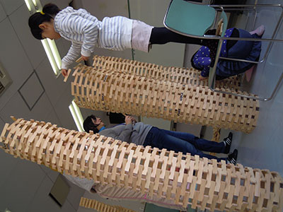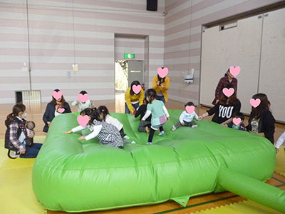 2015/03/16毎週月曜日は市民センターの体育館でのびのび遊ぶ「ひよっこ体育館DAY」があります。寒い冬場はお休みしていましたが3月からまた復活しました。この日はスペシャルで、大きなエアトランポリンが登場!初めはちょっと怖がる子も慣れてくると大はしゃぎで遊んでいました。