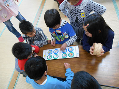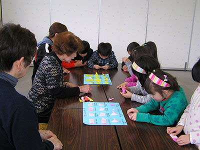 2015/03/11チャレンジタイムスペシャルとして小学生向けに実施しました。日頃、児童館での遊びとして大人気のマンカラですが、興味をもって繰り返し遊ぶ子は自信ありげに参加。そうでない子もチャレンジする様子が見られました。はじめてマンカラをする子の参加もあり、ルールーを教えるとすぐに覚えて、トーナメント方式の対戦にエントリー。学年に関係なく対戦し勝ち進むことができます。負けてくやしがっている勝ち気な子もいましたが、どんどん勝ち進んでいく子の試合を周りを囲んでみんなで見守り応援しました。優勝したのは2年生で準優勝は1年生でした。負けてくやしがった子など行事後もマンカラで遊ぶ姿が多く見られるようになりました。