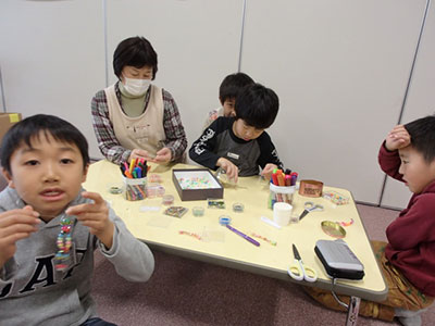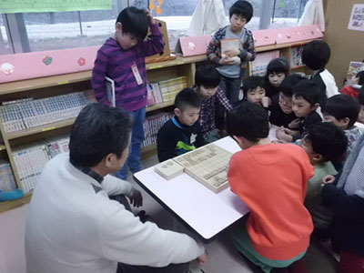 2015/03/03上野山児童館では第一・三火曜日に地域の名人をお迎えして、将棋に挑戦しています。毎回、豆棋士たちが真剣に手ほどきを受けています。2月と3月に、頑張った一年間の総まとめとして、児童館の腕自慢たち12名による「上野山将棋王戦」、一年生16名による「新人王戦」を開催しました。いつもは遊びで対局する相手でも、タイトルのかかった勝負になると本人はもちろん、周りで見ている子ども達も真剣な表情で、一つ一つの対局に一喜一憂していました。予選を勝ち抜き、決勝に勝ち進んだ子ども達にはピカピカのメダルが名人から贈られました。参加者全員の頑張りが光った会でした。決勝に進めなかったお友だちも、来年また挑戦ましょう!!