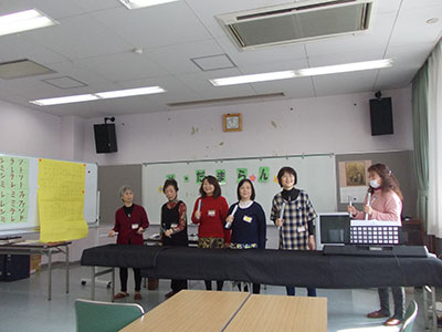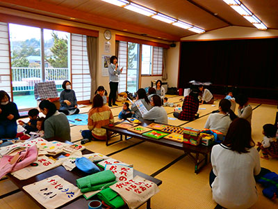 青葉区家庭健康課と共催で「子育てママの交流会」を行いました。当日は、森のおもちゃ図書館の布の絵本や手作りおもちゃがたくさん。部屋に入ると、早速おもちゃで遊びました。途中、保健師の健康講座「ストレス対処法」のお話があり、お母さんたちは、真剣に耳を傾けていました。また、保健師さんの指導でストレッチをして、体をほぐしました。その後、育児相談会もあり、個別に相談するお母さんもいました。参加した親子は、「楽しかった」「布おもちゃで遊ぶ機会がなかったので、楽しめた」「子どもが楽しそうに手に取っている姿を見てうれしかった」「保健師さんに相談できてよかった」等の感想が聞かれました。