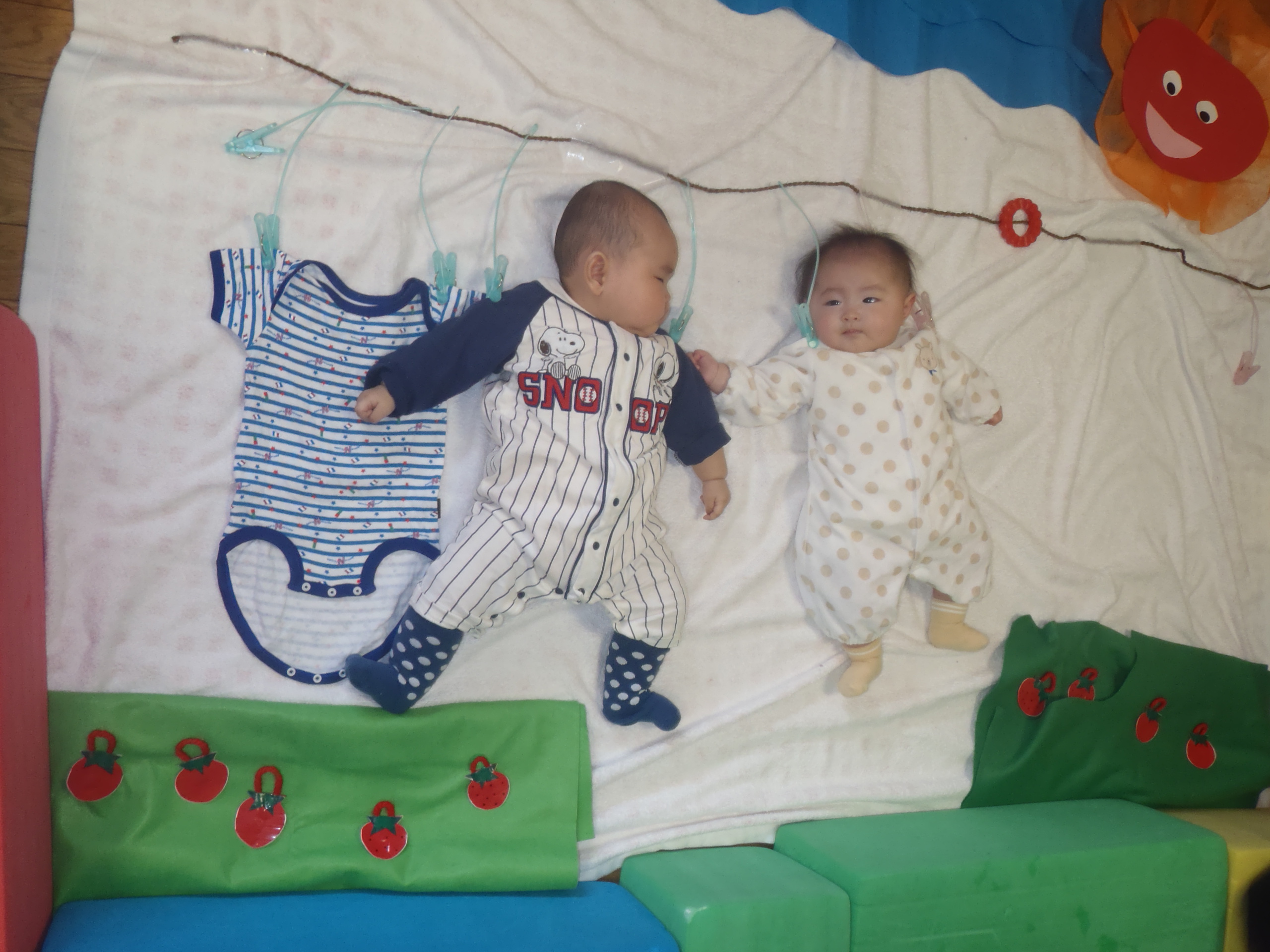 ハイハイができる前くらいのお子さんが対象の「いちご」ですが、今回は『ねぞうアート』