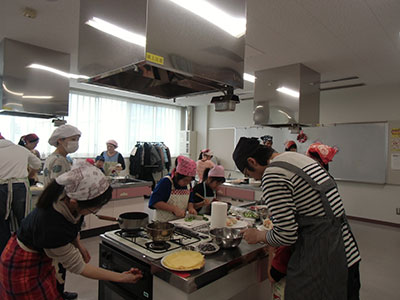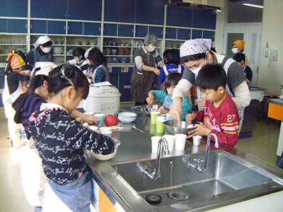 民生委員さんに手伝ってもらいながら、包丁で切ったり量を計ったりと、下準備も子どもたちで行いました。