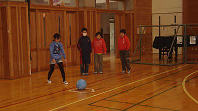 児童4名と先生方も一緒に参加して試合形式で行いました。