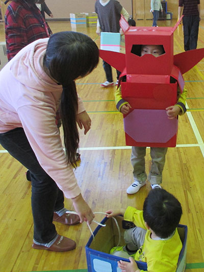 ダンボールがお家、車、ロボット…どれも素敵な作品に大変身。子どもたちはもちろん、頑張ったお父さん、お母さんも誇らしげな表情。皆、楽しい休日を過ごせたようです♪