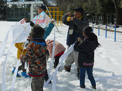 2015/01/31柳生市民センターとの共催事業「親子でわくわく!」の最終回は、ダンボールを使ったダイナミックな工作行事。前日の大雪で足元の悪い中でしたが、この日を楽しみに家族総出で参加してくれたご家庭もありました。