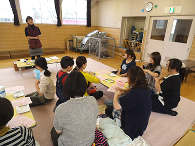 同室での託児だったため、静かな雰囲気の中での活動にはなりませんでしたが、参加したママたちからは、「体が温まった」や「癒された」という声が聞かれました。