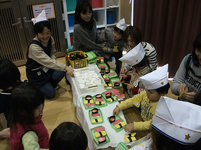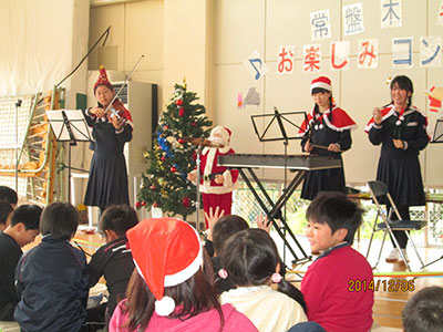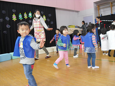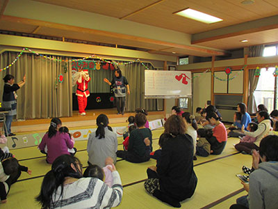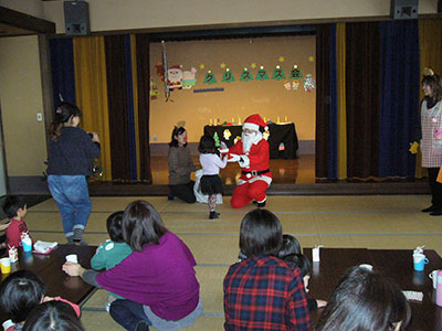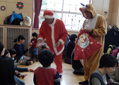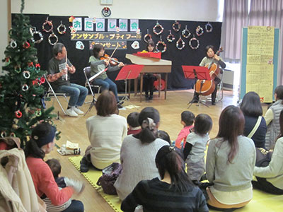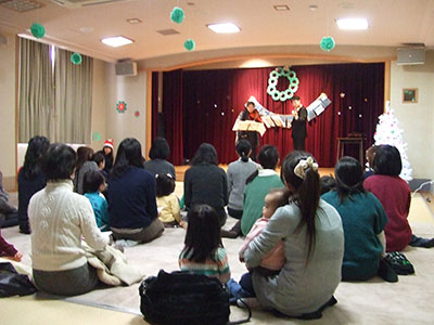 バイオリニスト柴生田さん、吉田さんをお招きして、乳幼児親子対象に、きよしこの夜などの演奏をしていただきました。参加者からは「とても素敵なひと時を過ごすことができました。」「バイオリンとビオラの生の演奏は普段聞くことが出来ないのでうれしい企画でした。」との声が多く聞かれ親子でリラックスした時間を過ごすことができました。ブラックパネルシアターの後、最後にサンタさんからプレゼントをもらい満面の笑みを浮かべ大満足の子ども達でした。