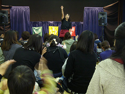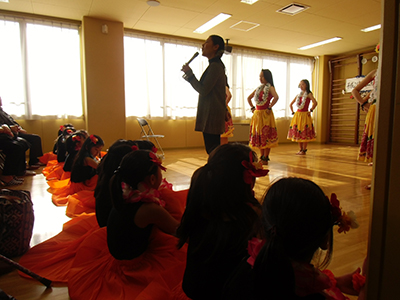 児童館まつりの発表を目指して立ち上げたフラダンスチーム「アロハキッズ」が、上杉社協主催の「みんなでふれ合いサロン」に参加し、かわいいフラをお客様に見て頂きました。全国的に有名な常盤木学園フラガールの皆さんから、この夏は何度もフラを教えて頂き、目をキラキラさせていた子ども達です。このサロンでは、常盤木フラガールの迫力あるステージを楽しませてもらい、会場の皆さん一緒に「上をむいて歩こう」を踊ることもできました。涙するお客様も多く、感動の時間でした。「お姉さん達の踊りと笑顔はすごかった!私達も緊張したけれど、頑張った!」と子ども達は興奮の面持ちで、感想を言い合っていました。
