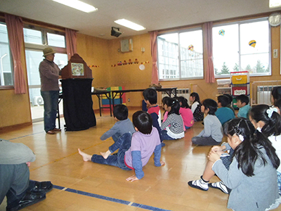 振替休業日の午後のお楽しみタイム。横田やさんがたくさんの本を持って児童館に来てくれました。大型絵本や紙芝居。楽しい絵本に手遊び。子ども達は、横田やさんのお話の世界にすっかり引き込まれていました。